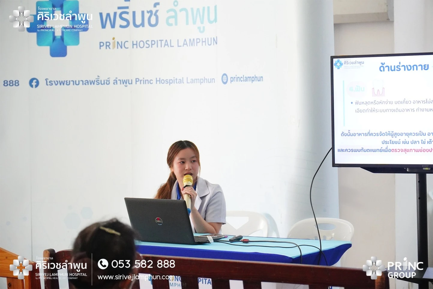 ภายในกิจกรรมได้รับเกียรติจาก นพ. กำพล ชื่นชิต ศัลยแพทย์กระดูกและข้อ บรรยายให้ความรู้เรื่อง โรคข้อเข่าเสื่อมในผู้สูงอายุ ครอบคลุมสาเหตุ อาการ การป้องกัน และแนวทางการรักษาที่เหมาะสม นอกจากนี้ ทีมเจ้าหน้าที่ พยาบาล และนักกายภาพบำบัด ได้ร่วมให้ความรู้ในหัวข้อสำคัญ ได้แก่ 1. โภชนาการเพื่อสุขภาพและสมรรถภาพในผู้สูงอายุ 2. การเปลี่ยนแปลงของร่างกายเมื่อเข้าสู่วัยสูงอายุ 3. “สูงวัยอย่างมีคุณภาพ” การดูแลตนเองในชีวิตประจำวัน 4. สูงวัย หัวใจ Active : การออกกำลังกายที่เหมาะสมและปลอดภัยสำหรับผู้สูงอายุ