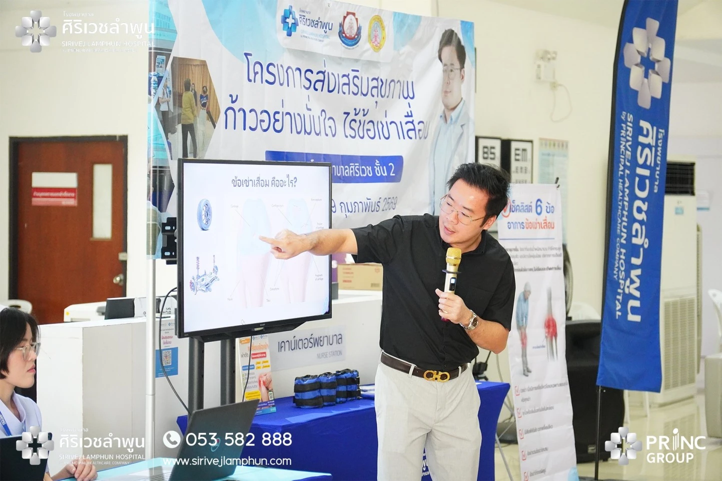 วันศุกร์ที่ 20 ก.พ 69 โรงพยาบาลศิริเวชลำพูน ร่วมกับเทศบาลตำบลเวียงยอง จัดโครงการ “ส่งเสริมสุขภาพก้าวอย่างมั่นใจ ไร้ข้อเข่าเสื่อม” เพื่อคัดกรองและประเมินความเสี่ยงภาวะปวดเข่าในผู้สูงอายุและกลุ่มเสี่ยงในพื้นที่ มุ่งเน้นการดูแลเชิงป้องกัน ลดความเสี่ยงต่อโรคข้อเข่าเสื่อม และส่งเสริมคุณภาพชีวิตของผู้สูงวัยในชุมชน